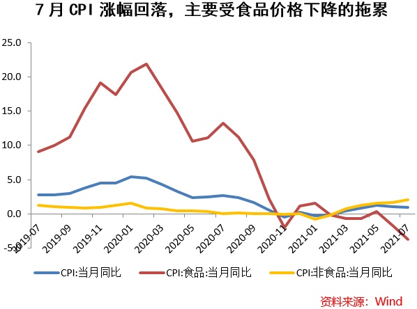 CPI同比回落,主要受生猪供给继续增加所拖累,而在极端天气影响下,鲜菜和鲜果价格略有上涨。回落幅度不大,也主要因为非食品价格上涨加速,尽管部分地区出现疫情,但全国总体上旅游、出行服务增加,汽柴油和机票、旅游和宾馆价格上升。