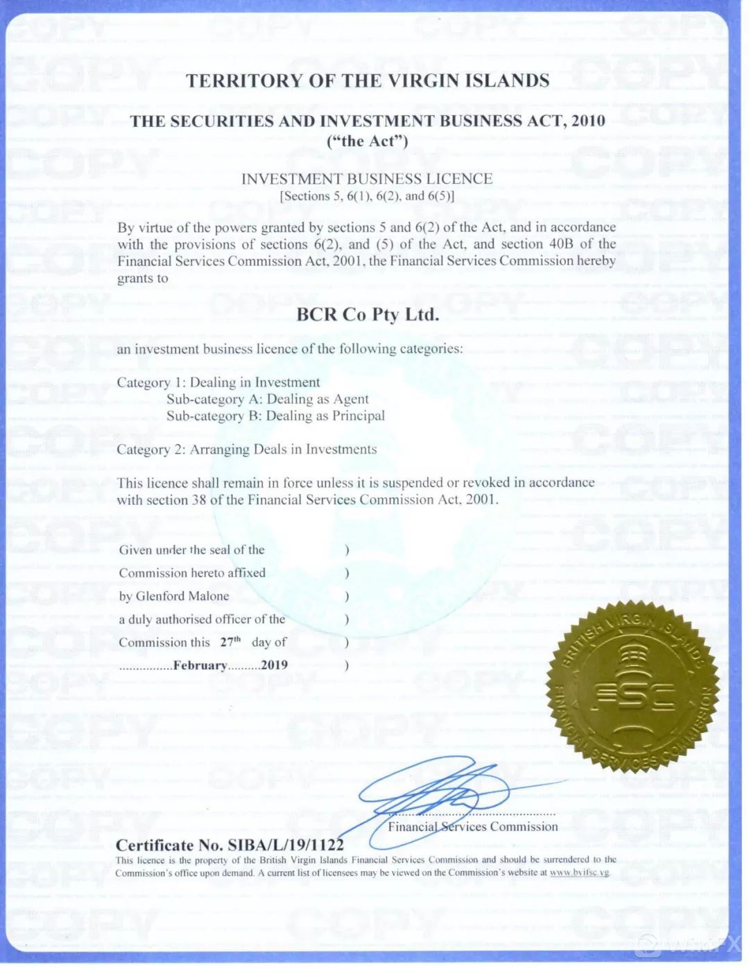 BCR深知广大投资者对于资金安全的关心高于一切,在迈入第十一个年头的今天继往开来,正式推出英属维尔京群岛金融委员会(BVI FSC)牌照。