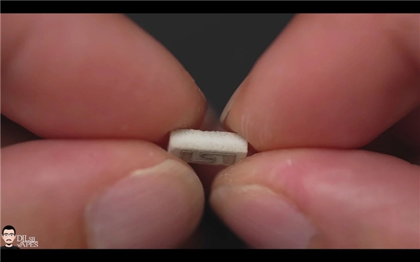DJLsb Vapes 主理人还展示了FEELM 陶瓷芯一次性产品所采用的陶瓷雾化芯,他提到此次的雾化芯相比以前的 FEELM 陶瓷芯似乎更厚,且陶瓷部分的孔更多: