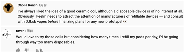有趣的是,DJLsb Vapes 这条视频评论区对此产品的评价也各不相同: