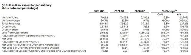 财报显示,蔚来二季度营收84.5亿元人民币,高于分析师预期的82.9亿元,较上年同期增长127%,即至少翻倍,环比增5.8%,也接近5月给出官方指引的区间上限(85亿元)。