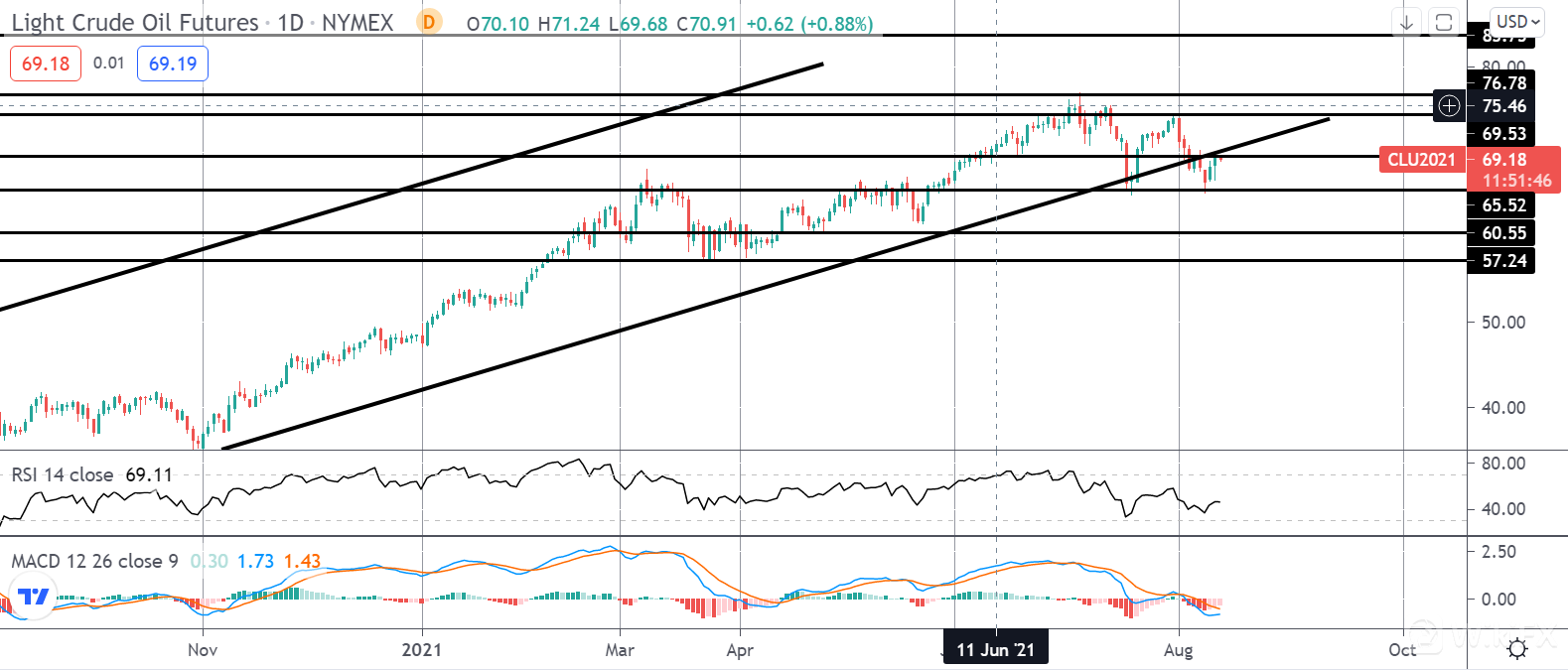 本周能源信息署的最新报告为原油多头提供了一些帮助。 EIA 报告称,上周商业库存减少了 40 万桶。虽然这比市场预期的减少 80 万桶要少,但它延续了近期库存下降的主题,反映出随着重新开放的继续,美国需求不断增加。