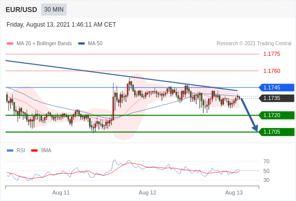 交易策略:在1.1745之下,看跌,目标价位为1.1720,然后为1.1705。