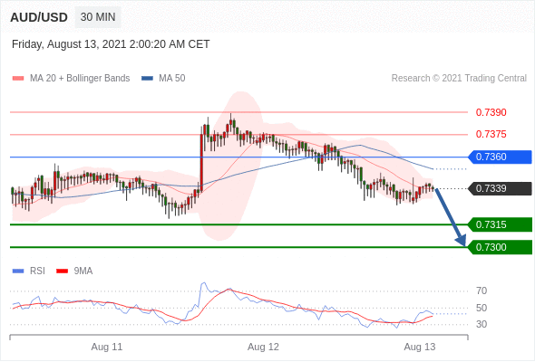 交易策略:在0.7360之下,看跌,目标价位为0.7315,然后为0.7300。