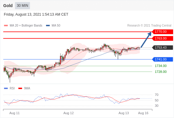 交易策略:在1741.00之上,看涨,目标价位为1763.00,然后为1770.00。