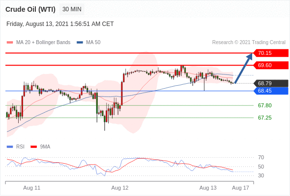 交易策略:在68.45之上,看涨,目标价位为69.60,然后为70.15。