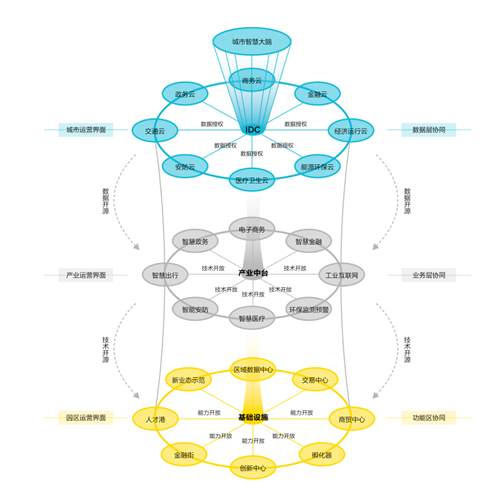 谈到城市的“数智化生态”则包括城市运营、产业运营、园区运营三大运营层面。其中城市运营层面主要包括数据流管控,以及联合相关单位共建基于数据的各类云平台和城市智慧大脑;产业运营层面主要包括基于云平台的各类应用场景落地运营,通过数据智能实现数据、算力、算法支持下的创新应用;园区运营层面主要包括承接各类数字化应用场景的功能载体,通过网络协同支持各类数字化创新应用场景在园区落地。