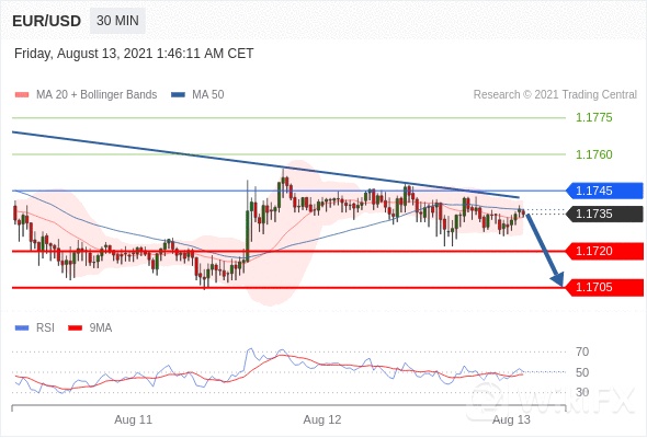 在 1.1745 之下,看跌,目标价位为 1.1720 ,然后为 1.1705 。