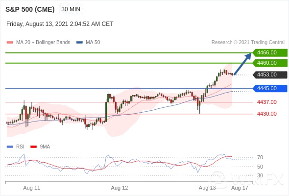 在 4445.00 之上,看涨,目标价位为 4460.00 ,然后为 4466.00 。