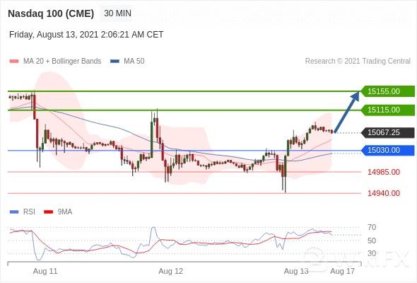 在 15030.00 之上,看涨,目标价位为 15115.00 ,然后为 15155.00 。