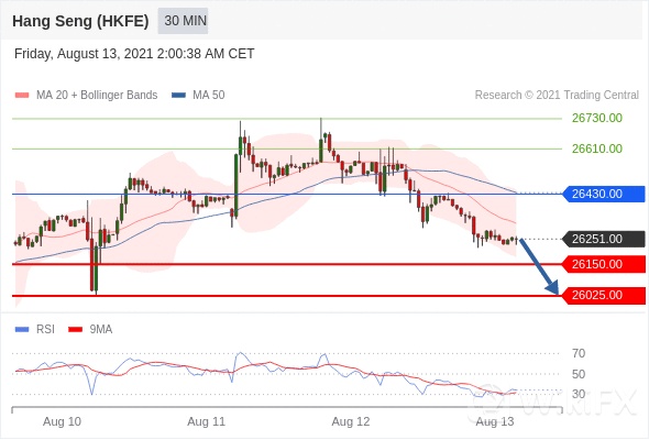 在 26430.00 之下,看跌,目标价位为 26150.00 ,然后为 26025.00 。