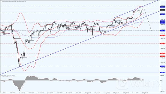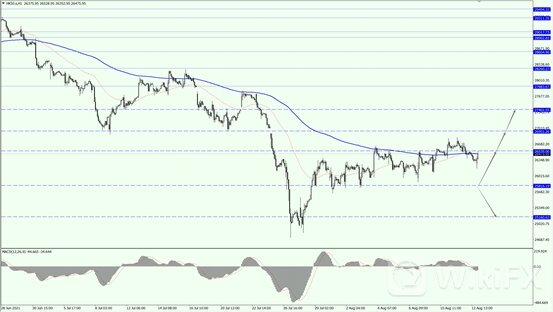 HK50 今日主要关注 25816 一线,如果 HK50 运行于 25816 一线上方,则依次关注 26535 和 26951 两个位置的压制力度。如果 HK50 力度跌破 25816 一线,则应关注 25160 一线的支撑力度。