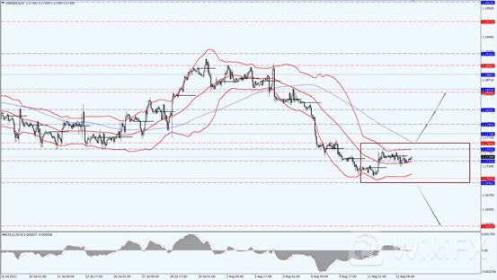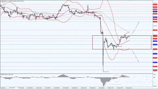 欧元昨日底部弱势横盘震荡,今日关注欧元对 1.1696 到 1.1764 区间的突破方向,如果向上突破 1.1764 一线则将打开进一步的上行空间;如果向下跌破 1.1696 一线,则将打开进一步的下行空间。
