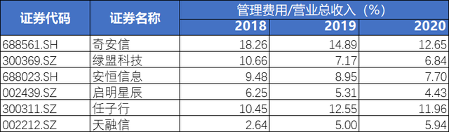 与同行相比,奇安信管理费用的营收占比,近3年一直在行业中排名第一。与营收金额相近的启明星辰相比,仅2020年就相差高达8个百分点以上。这真是没有对比就没有伤害。尤其与同行相比,奇安信的管理效率就有些“伤害性不强,侮辱性很大”。
