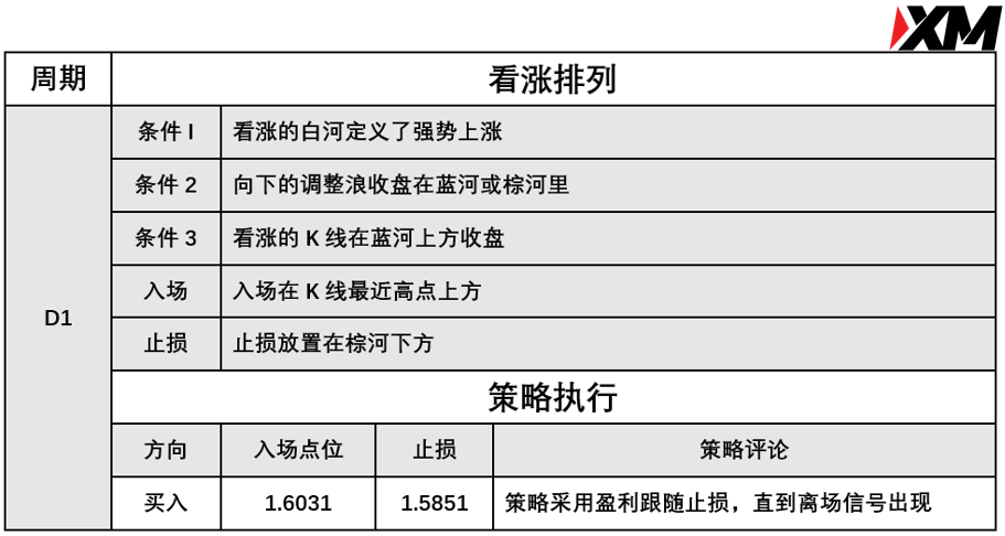 入场价位:1.6031,止损价位:1.5851,采用盈利跟踪止损离场策略。