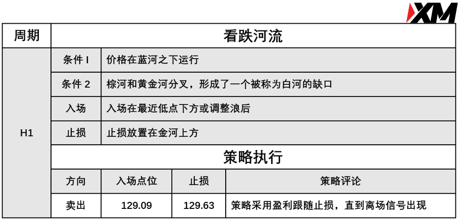 入场价位:129.09,止损价位:129.63,采用盈利跟踪止损离场策略。