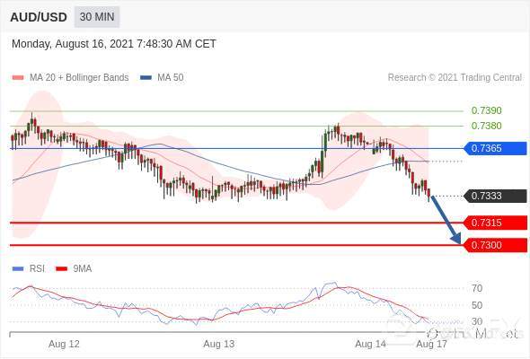 在 0.7365 之下,看跌,目标价位为 0.7315 ,然后为 0.7300 。