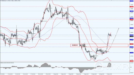 欧元应关注下方 1.1753 到 1.1764 支撑区间,在该区间上方应保持顺势看多的思路为主,上方关注 1.1820 一线的压制力度。