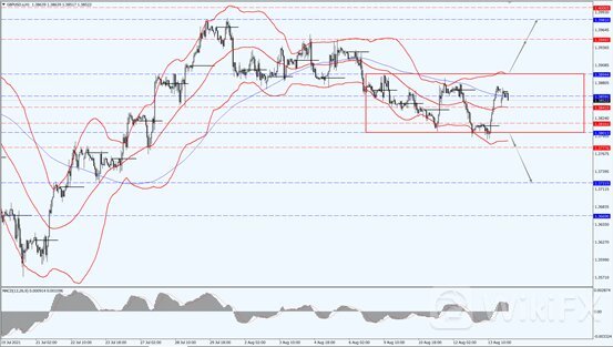 今日英镑关注 1.3801 到 1.3894 震荡区间的突破方向,如果向上突破 1.3894 一线则将打开进一步的上行空间,届时关注 1.3949 一线的压制力度;如果向下跌破 1.3801 一线,则将打开进一步的下行空间,届时关注 1.3777 一线的支撑力度。
