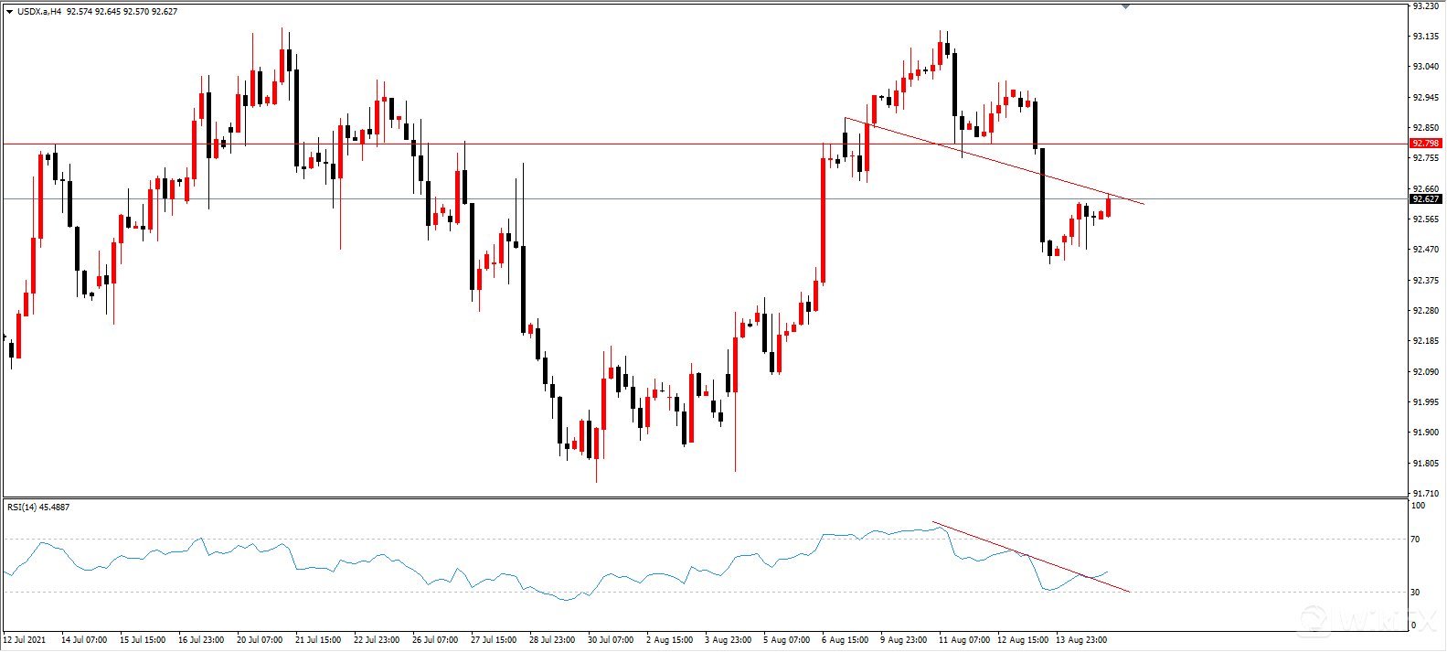 由上图4小时级别中,美元指数目前被顶部形态的趋势线压制。交易员今日可以观察价格是否可以突破趋势线,还是被打压下行,这对整个市场的走势都有指导作用。