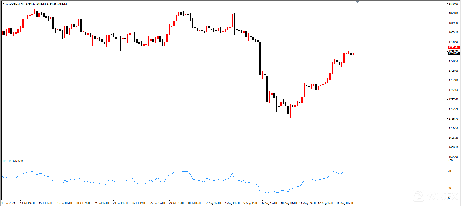 在4小时级别内,黄金下一个阻力位在1792,但是黄金在周五的上涨动力非常强劲,在更高级别的图中形成了强有力的上涨形态K线,有可能会突破该位置。