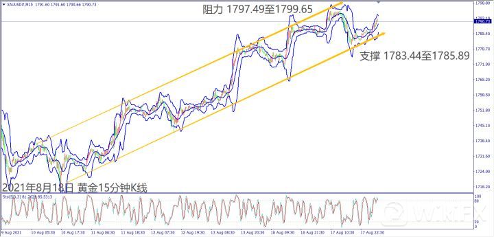 日级别线图,出现十字星反转,1790关口冲不过,可能回测5日均线;15分钟K线,近期出现上升矩形,守住趋势线,有机会挑战上方阻力。