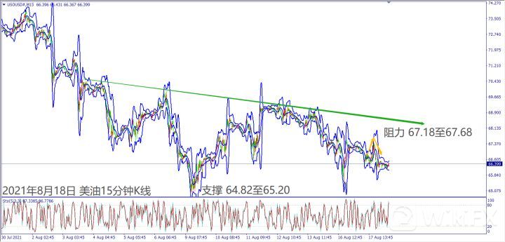 昨日(17日)欧元区公布第二季度GDP不佳,以及美国公布零售销售不及市场预期,造成道琼斯和纳指皆跌逾1%。受到美股下跌影响油价再度回落至66美元附近整理。晚间美国公布工业产出利好,一度带动油价急涨约2%。美联储主席鲍威尔称新冠疫情在经济活动蒙上阴影,美股持续下探当日新低,油价逆势下跌至66美元上方震荡整理。