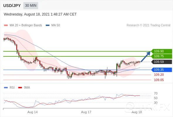 交易策略:在109.35之上,看涨,目标价位为109.75,然后为109.90。