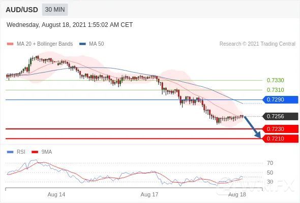 交易策略:在0.7290之下,看跌,目标价位为0.7230,然后为0.7210。