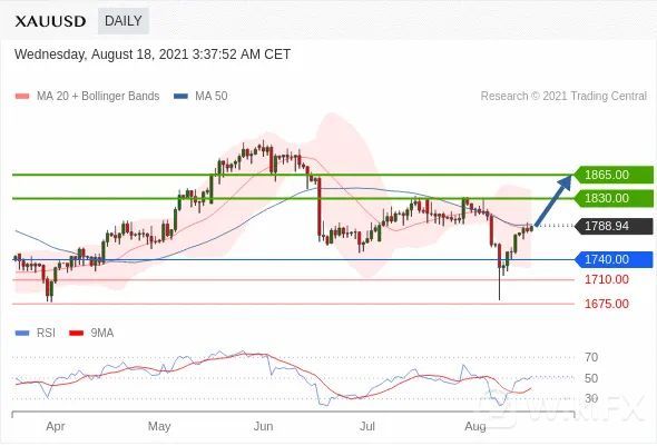 交易策略:在1740.00之上,看涨,目标价位为1830.00,然后为1865.00。