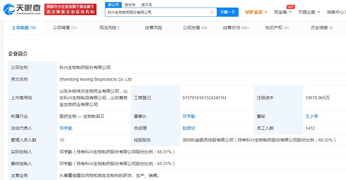 公开资料显示,科兴制药控股股东为深圳科益医药控股有限公司,持股66.32%。