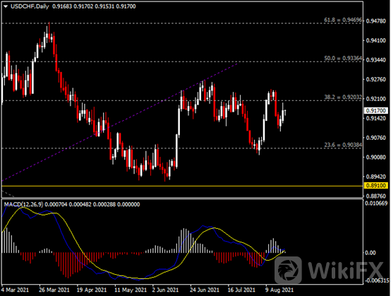 (美元兑瑞郎日线图来源:HotForex)