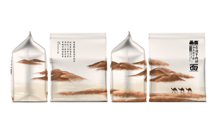 “画面”品牌既有和中式山水一样体现中华文化深厚底蕴的传统包装,也有新潮的、带来视觉冲击的包装。丰富的、营养均衡的料包与新颖的外观一起,迎合消费者对高品质产品的需求,与其他的速食面品牌形成差异。