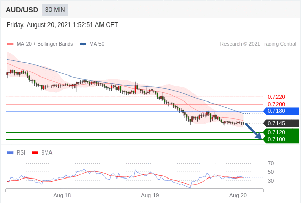 交易策略:在0.7180之下,看跌,目标价位为0.7120,然后为0.7100。