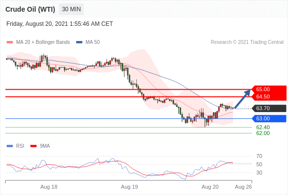 交易策略:在63.00之上,看涨,目标价位为64.50,然后为65.00。