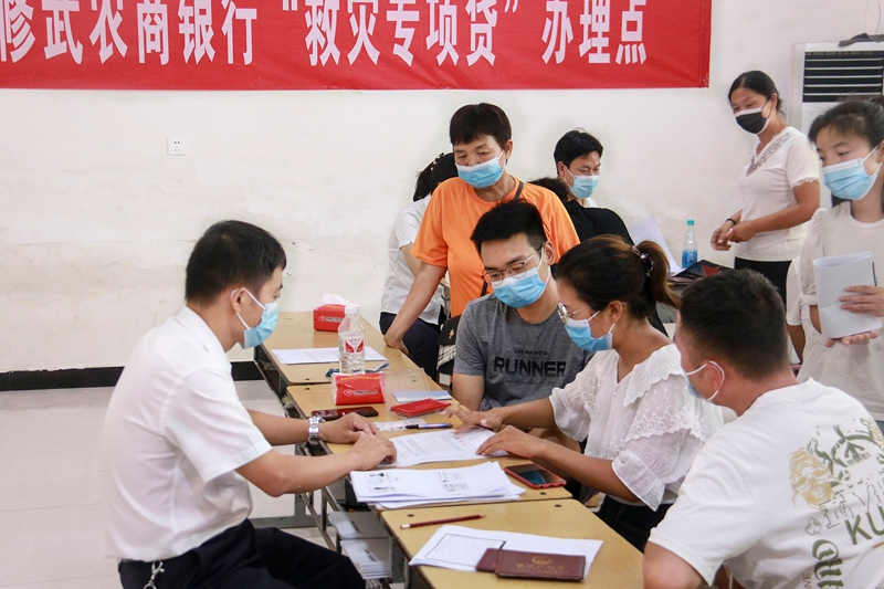 今年7月,河南修武县连续遭遇强降雨天气,全县16.5万人口受灾。在灾后重建中,修武农商银行与修武县政府通力合作,推出“群众贷款、政府贴息” 的“救灾专项贷”,帮助辖内受灾严重的两个乡镇村民尽快恢复生产经营。截至目前,该行已受理“救灾专项贷”申请600余笔,金额5000余万元。图为该行在受灾严重的西水寨村现场为村民办理救灾贷款业务。