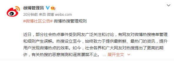 具体来看,新浪微博的公告称,近日,部分社会热点事件受到网友广泛关注和讨论,有网友对微博热搜榜单管理和细则产生误解。为消除疑惑,澄清“花钱撤热搜”“花钱压热搜”等不实传言,现将站方有关热搜的相关规则公布如下。