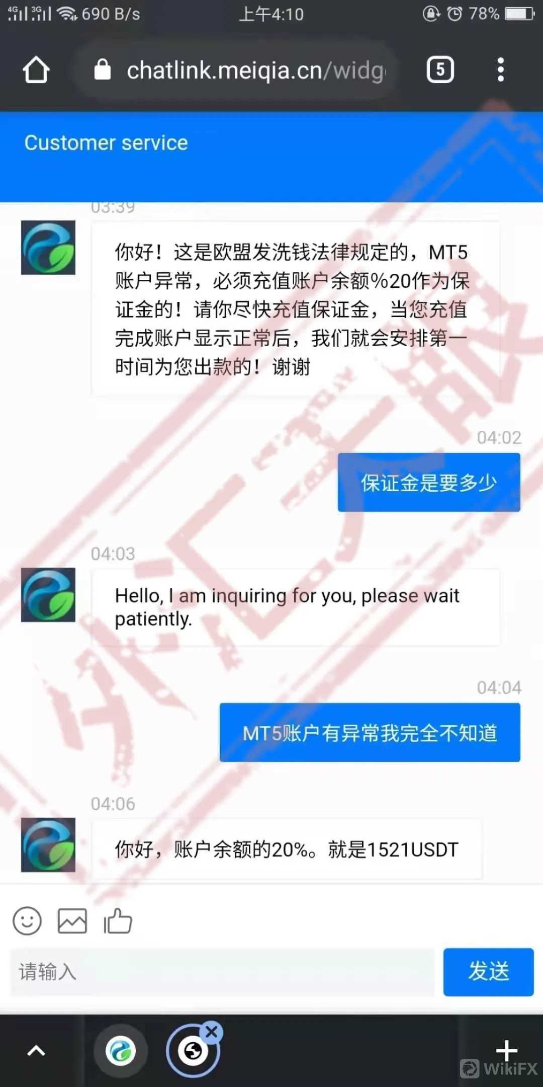 但是也是因为突然转移平台的事情过于蹊跷,叶先生对这样的外汇平台产生了怀疑,就开始自己提交出金申请。意料之外,出金申请被驳回了,原因是提现过程中出现了异常,严重违反了国际交易的平台规定,且已经构成犯罪。叶先生必须缴纳账户余额20%的保证金,才能解除账户异常!这不是“狮子大开口”吗?本来就有怀疑的叶先生更加确定自己遭遇了黑平台!