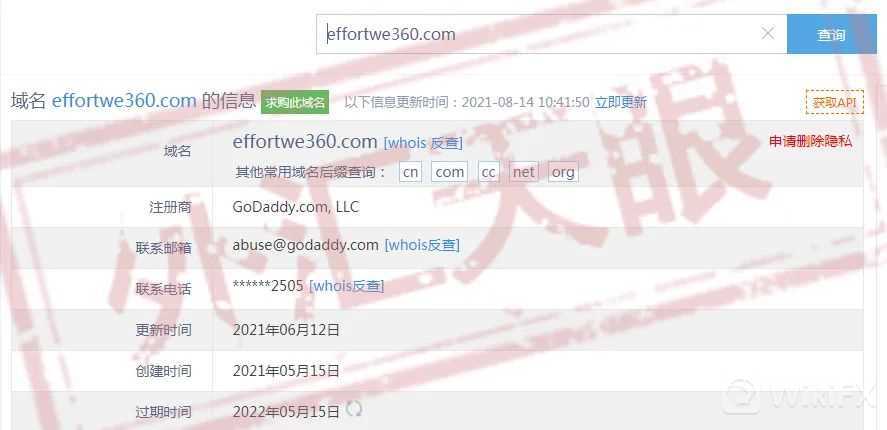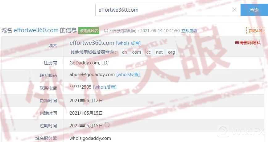 查询两个官网的域名信息,竟然都是在2021年5月15日创建,可见是“批量生产”!