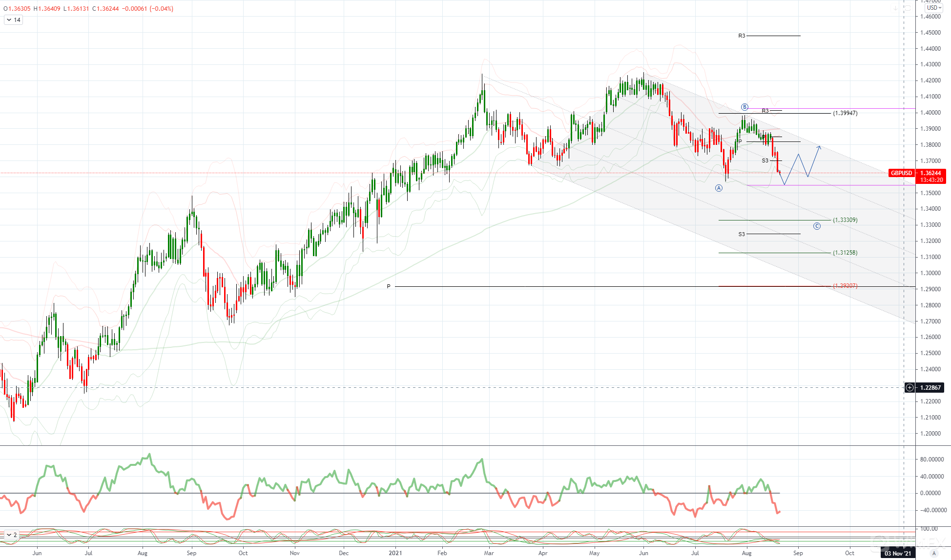 下跌目标测试7月趋势底线1.3572,低于2021年底线1.3452