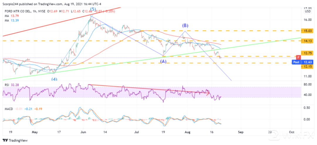 福特汽车下个关键的支撑区域为12.15美元;这也是一个等待被填补的缺口。
