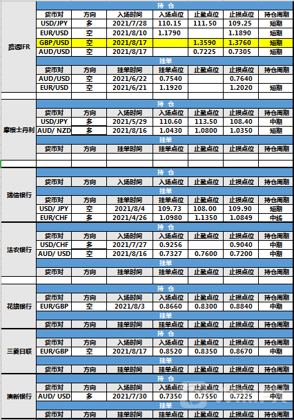持仓方面,路透IFR英镑兑美元仓位调整。英镑兑美元止损点位调整至1.3760,目前处于持仓中。