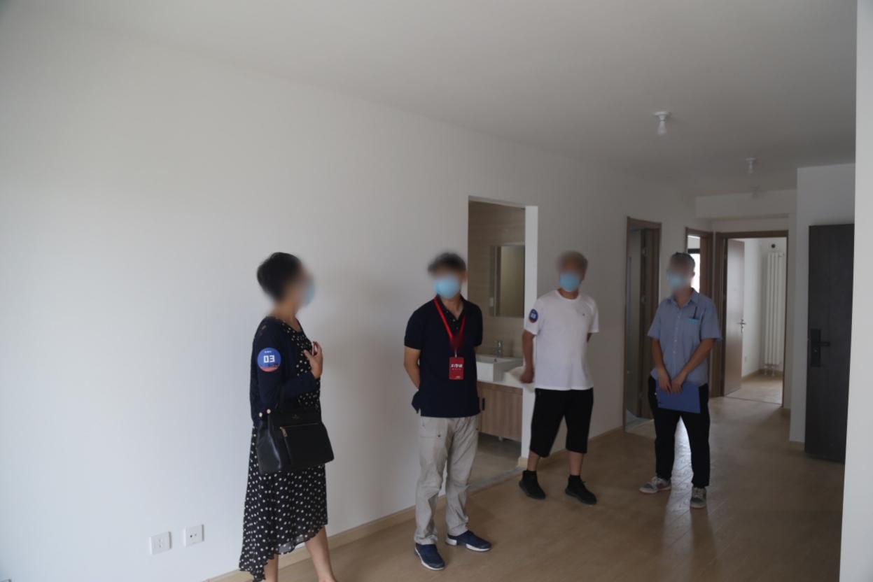 工作人员陪伴业主在户内进行查验