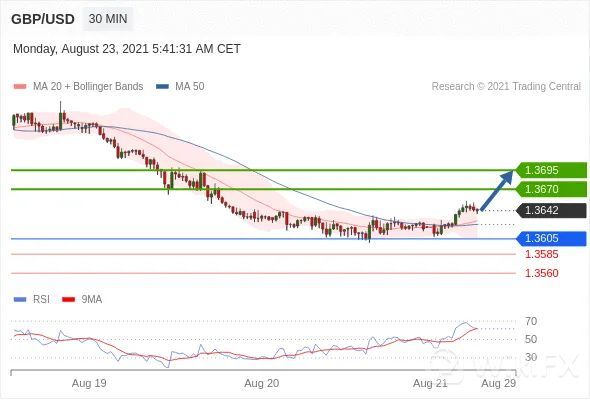 交易策略:在1.3605之上,看涨,目标价位为1.3670,然后为1.3695。