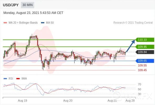 交易策略:在109.65之上,看涨,目标价位为109.95,然后为110.10。