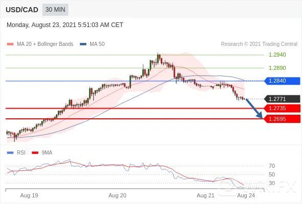 交易策略:在1.2840之下,看跌,目标价位为1.2735,然后为1.2695。