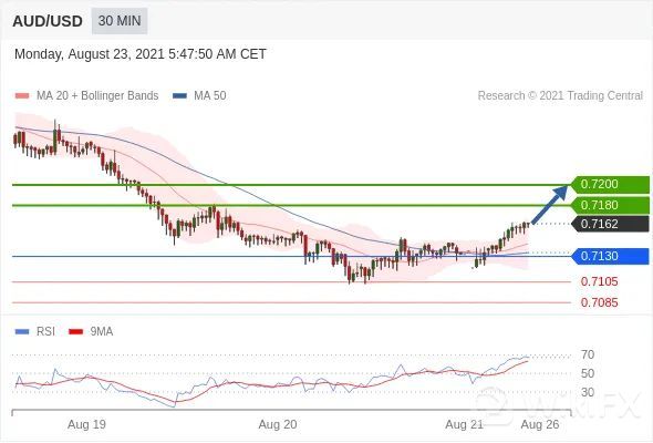 交易策略:在0.7130之上,看涨,目标价位为0.7180,然后为0.7200。