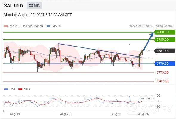 交易策略:在1779.00之上,看涨,目标价位为1795.00,然后为1800.00。
