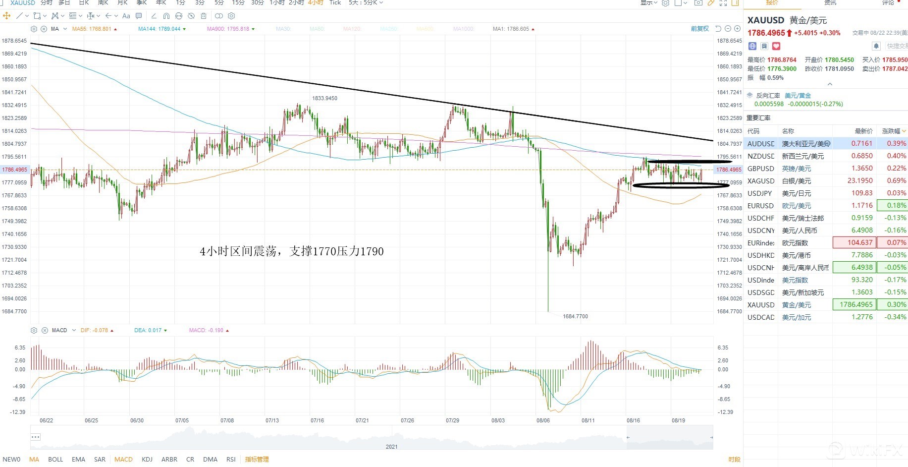 黄金继续维持高位震荡,短期等待方向选择,而基本面上短期不利金价上涨,就美元指数而言,金价已经属于偏强了,目前技术层面压力再1790附近,若短期反弹突破1790则不排除打开向上空间的可能性,日内支撑1770跌破则有二次探底的风险,再没有选择方向之前按照区间震荡对待,短期不存在趋势