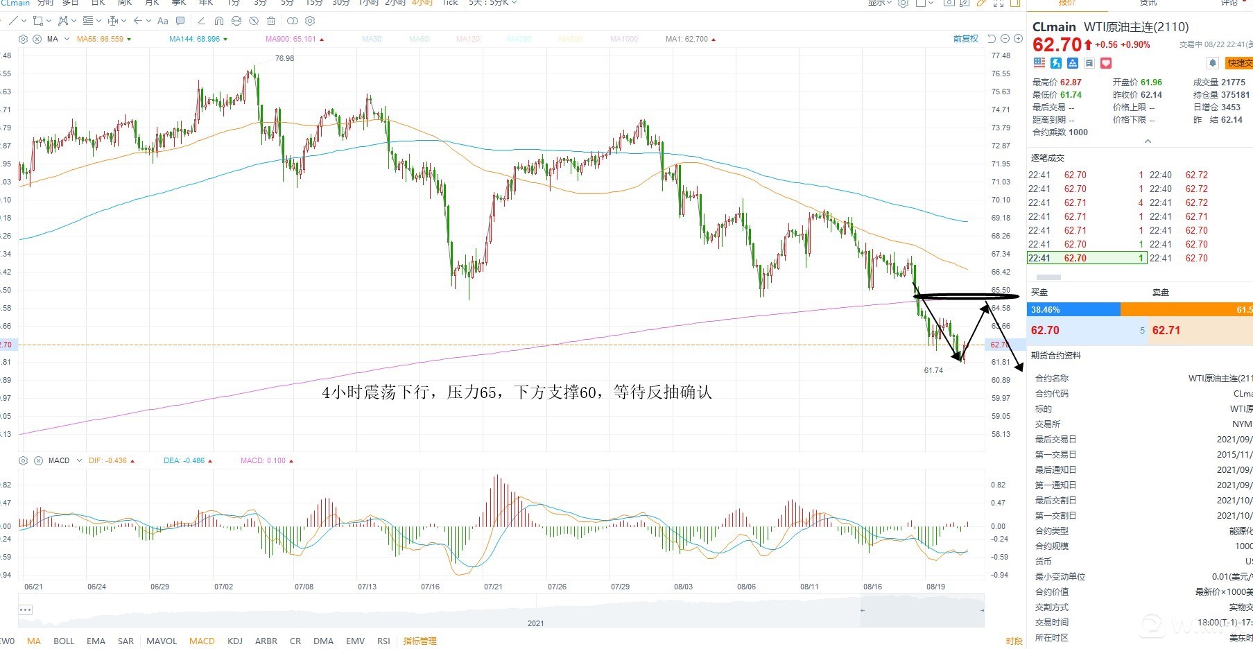由于需求不及预期,美原油连续下跌,短期而言结构上属于加速下跌的过程,而随着需求旺季进入尾声,且供给端开始增产,不排除油价进一步下地的可能性,技术才而言,短期重要支撑60美元整数关,若跌破则继续加速,日内重要压力65美元前期支撑附近,等待反抽确认跌破是否有效